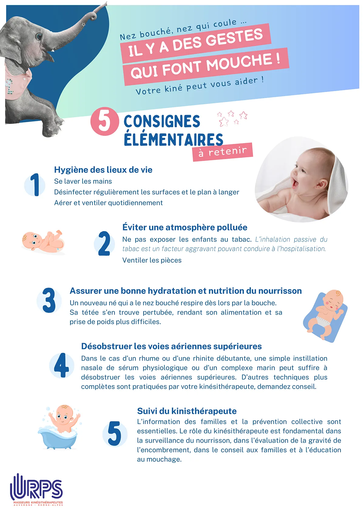 L’URPS MK ARA relance sa campagne visant à rappeler les bonnes pratiques de mouchage et la prévention de la bronchiolite auprès des MK, des familles et des organismes en lien avec les enfants.